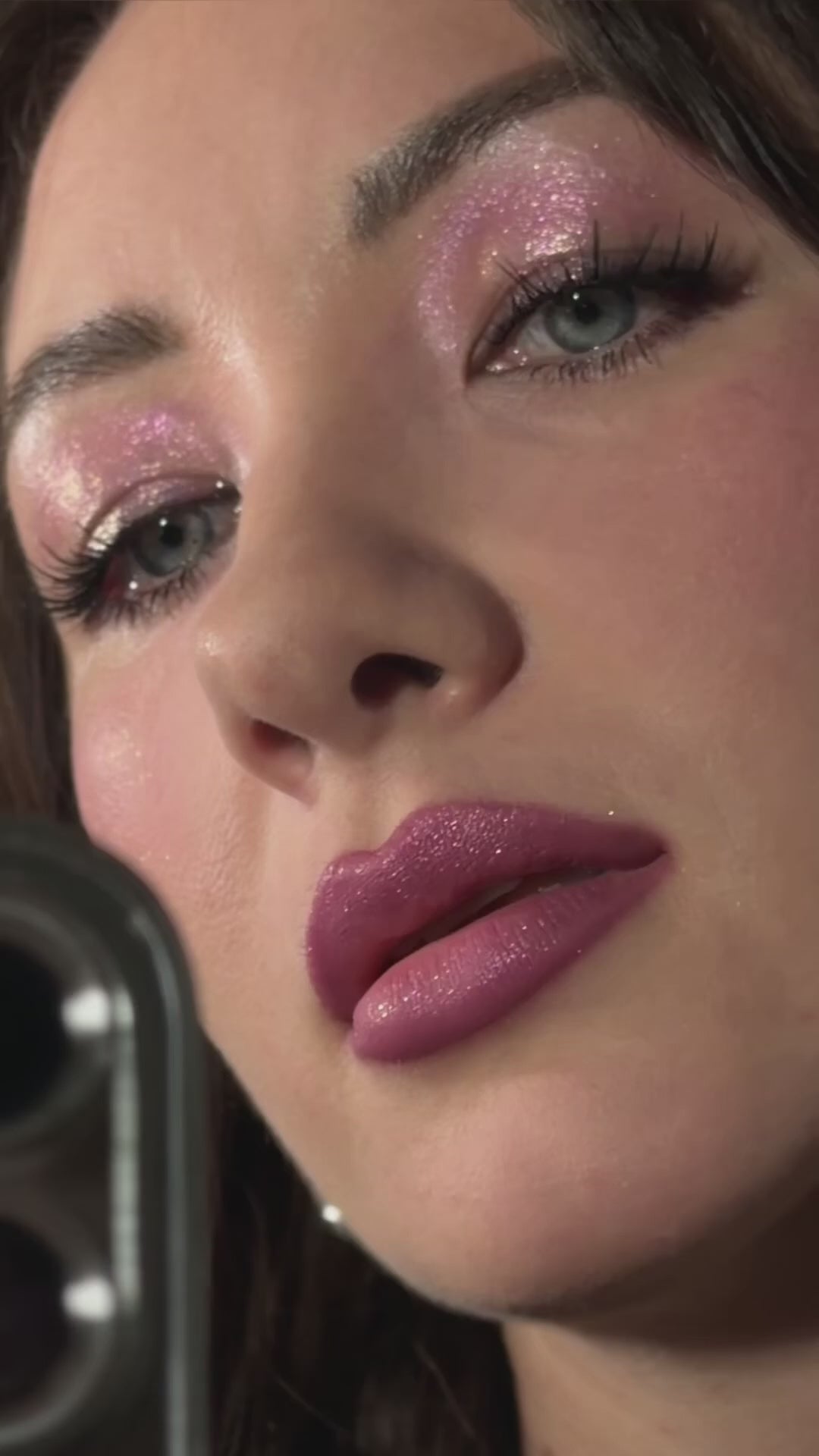 - Multichrome vegan sparkle — shifts lavender, pink, soft coral, and moonlit gold with movement and light